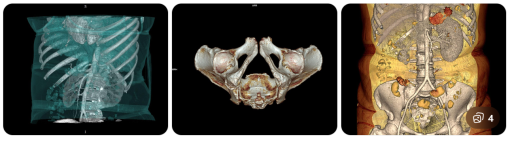 A 3D pelvis & abdomen scan is an advanced CT scan that creates three-dimensional images of internal organs such as:
